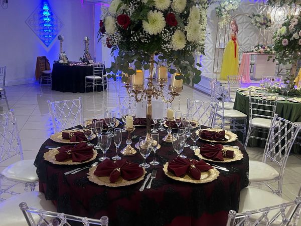 Elegante y lujoso con espacio hasta para 400 personas Fandango Banquet es perfecto para Quinceañeras, Fiestas de Cumpleaños, Bodas, Aniversarios, Fiestas Navideñas, Reuniones Escolares, Seminarios, Conferencias, y Funciones de Recaudación de Fondos.